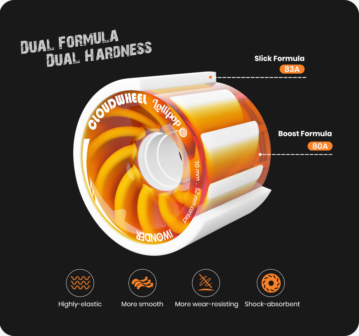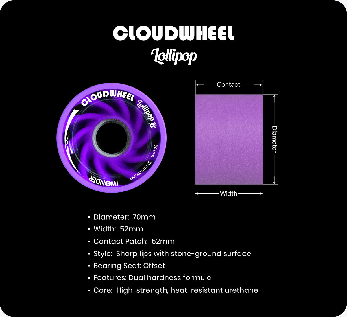 We at cloudwheel recognized the design and applied it to our wheels so you may better glide through the downhills or apply less force for your daily commute. Lollipop 70mm wheels are more suitable for your daily commuting needs.