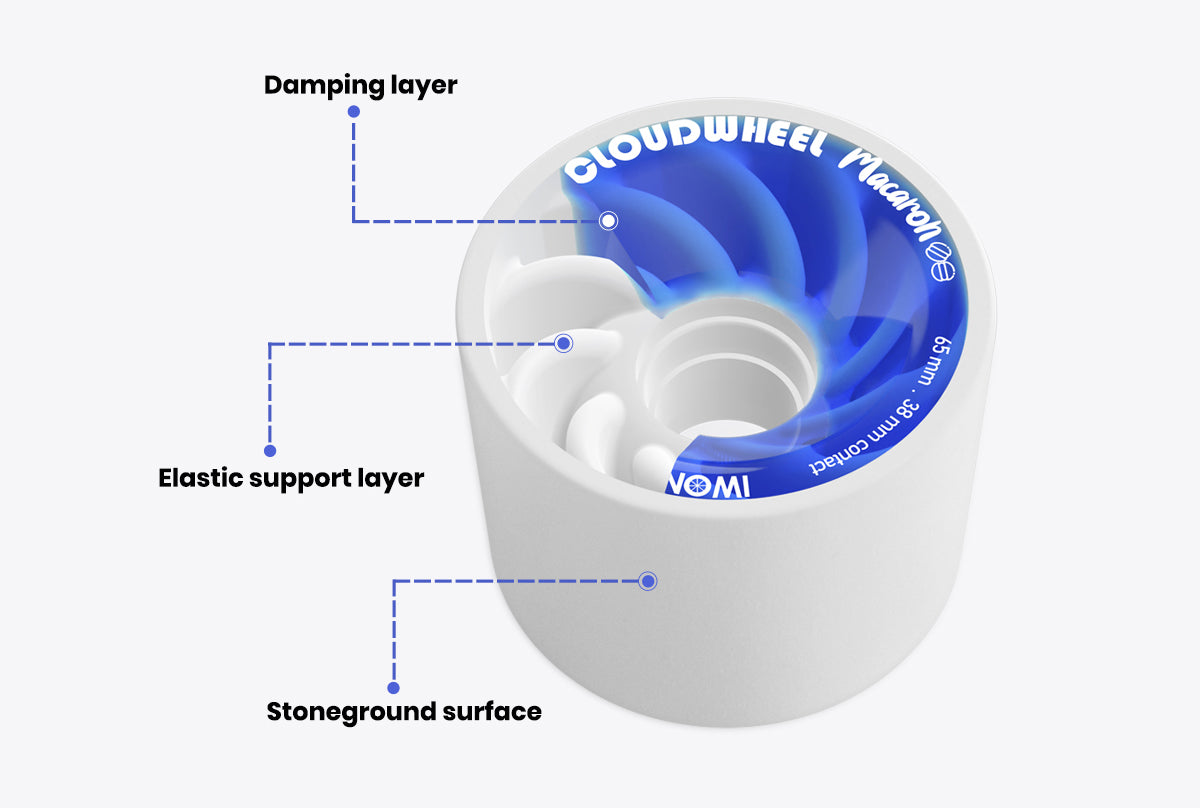 Dual hardness design of our wheels is tested by top skaters in the world and tweaked to perfection by careful analysis of the data collected during the test trials,where the most talented skaters put their skills to test the limits of our cloudwheel.